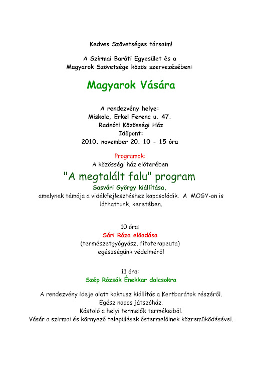 Magyarok Vására Szirmán