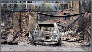 egy vonalban minden kiéget. Itt vannak a leéget házak maradványai. Útközben egy autóbusz kiéget a főúton az erdő között.