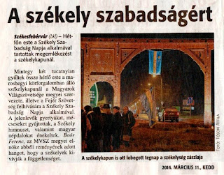 Az újonnan megválasztott megyei elnökség szolidaritási megmozdulást hirdetett március 10-én a Székely Vértanúk napján Marosvásárhelyen szervezett tüntetéssel, amelyet a Székesfehérváron egy évvel ezelőtt felállított székely kapunál tartottak meg, és amelyről a megyei napilap címoldalon tudósított.